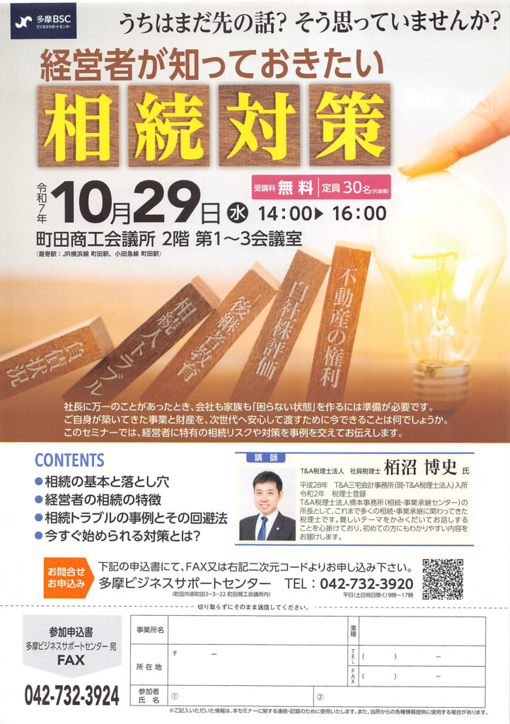 HOME > TOPICS > 10/29開催-経営者が知っておきたい「相続対策」